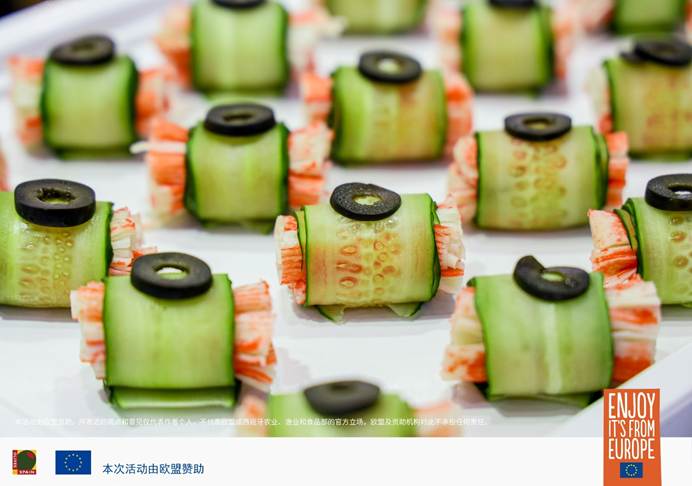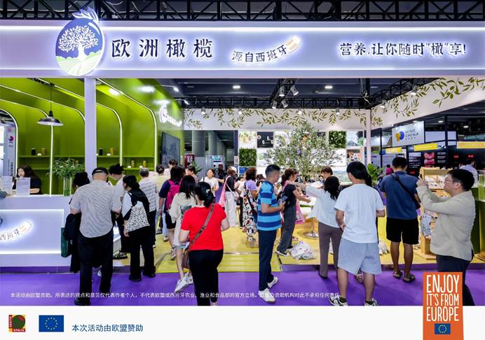 在这场食品行业的盛会中,由西班牙橄榄行业协会(INTERACEITUNA)主办、欧盟资助的欧洲橄榄推广项目在位于11.2馆的AT03展位精彩亮相。展台集中展示了来自欧洲的三大类橄榄及多种风味橄榄产品,引来不少观众驻足品尝。