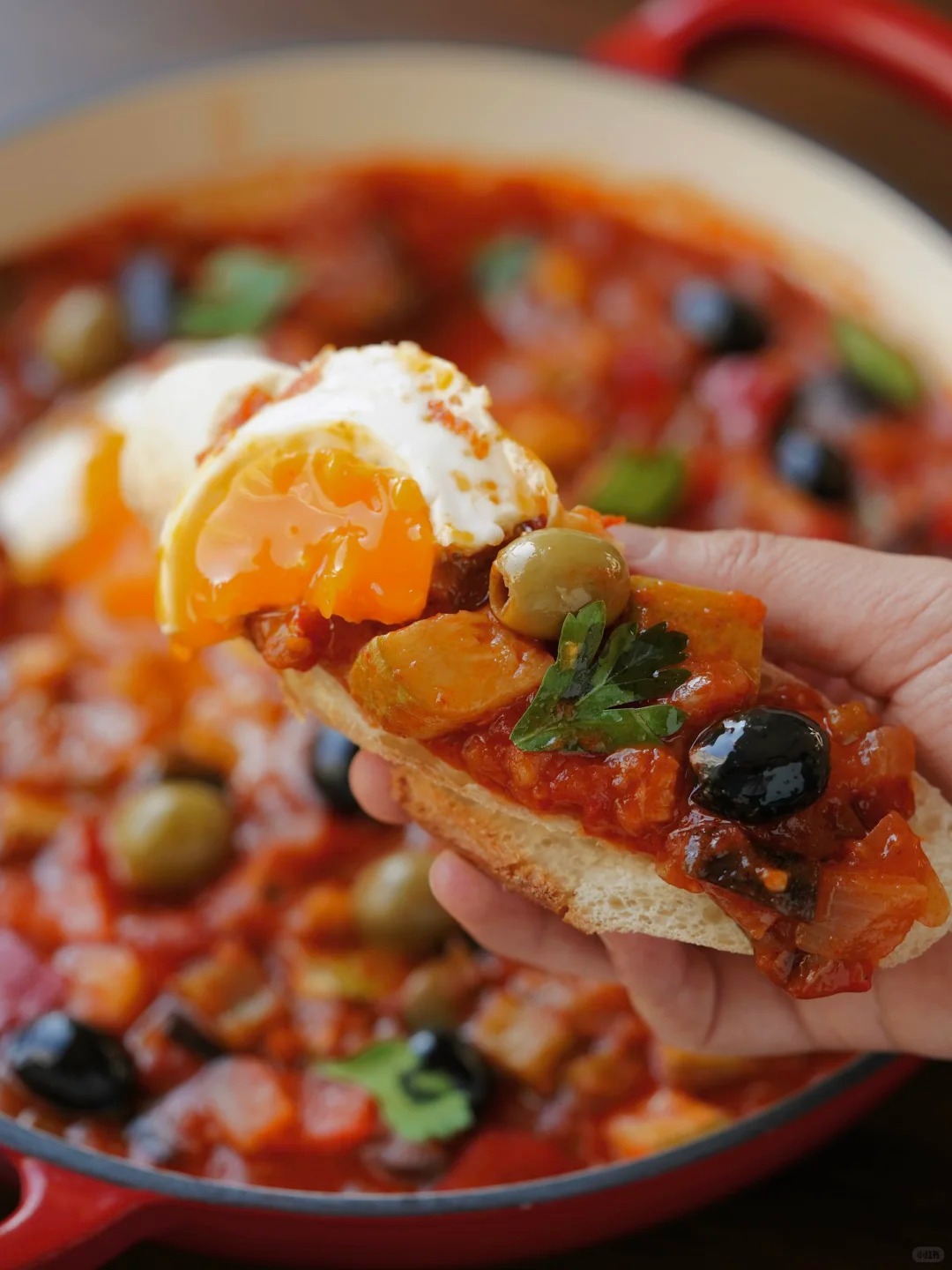初夏没胃口的时候,全靠番茄来救场,酸甜开胃还能骗人多吃蔬菜。分享一个我最近很爱的吃法,在西班牙炖菜里撒一点欧洲橄榄。